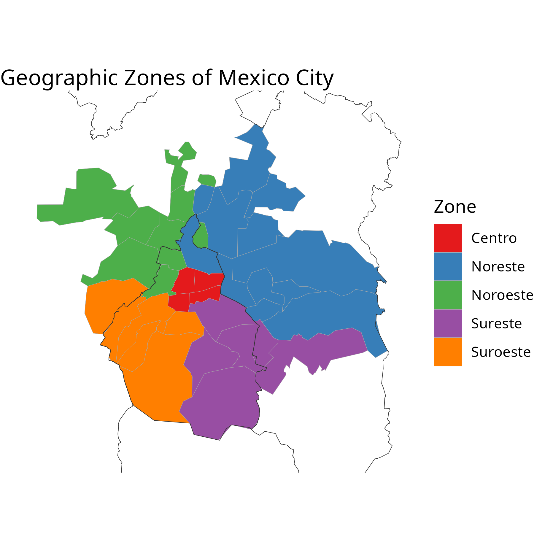 title = "Geographic Zones of Mexico City") +